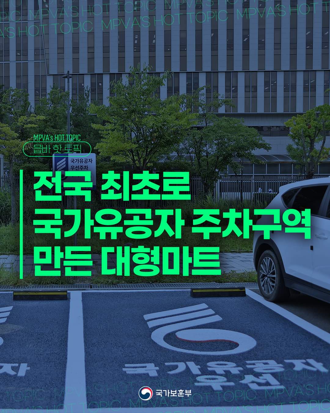 국가유공자를 일상에서 존중하고 예우하는 보훈문화 확산을 위한 '국가유공자 우선 주차구역'이 전국 최초로 민간 다중이용시설인 대형 할인마트에 설치됩니다.