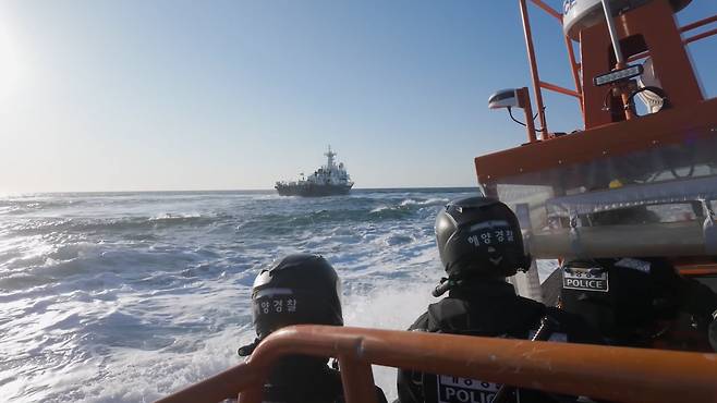 안전헬멧과 방검부력조끼를 착용하고 6연발 고무탄총과 삼단봉 등으로 무장한 해경 해상 특수기동대 20여명은 최대 속도 40노트(시속 74㎞)에 달하는 고속정 3척에 나눠타고 빠르게 접근해 이 배에 올라탔다. 조타실을 장악한 해경 대원들은 “중국 선원 5명이 서해 특정해역에서 잡어 50㎏을 잡아 어창에 보관 중”이라고 상부에 보고했다.