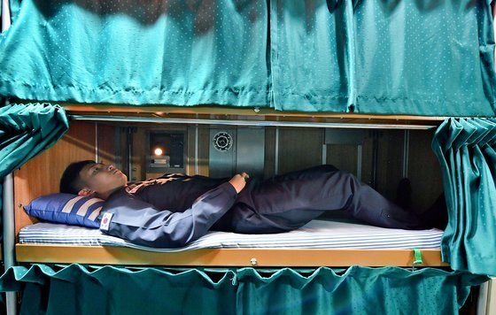 잠수함 내부 침대는 1m80㎝가 넘는 사람은 다리를 채 다 펴지 못한다. 사진 제공=해군